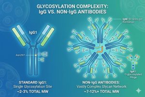 While these non-IgG classes offer remarkable therapeutic potential, they bring unprecedented structural complexities. Chief among these challenges is glycosylation. As a critical post-translational modification (PTM), glycosylation influences everything from structural stability and half-life to effector function and immunogenicity. In non-IgG antibodies, glycosylation is vastly more complex than in standard IgGs, meaning that conventional manufacturing and analytical approaches are no longer sufficient.